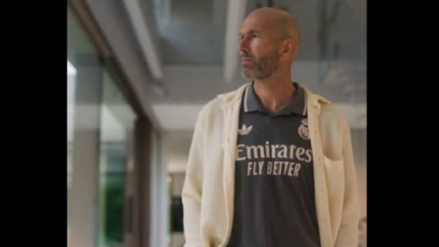 El francés Zidane aparece en el vídeo dando toques a un balón de futbol en su casa con un plano que va subiendo hasta llegar a una camiseta gris, la nueva tercera equipación del Real Madrid para la temporada 2024-25.