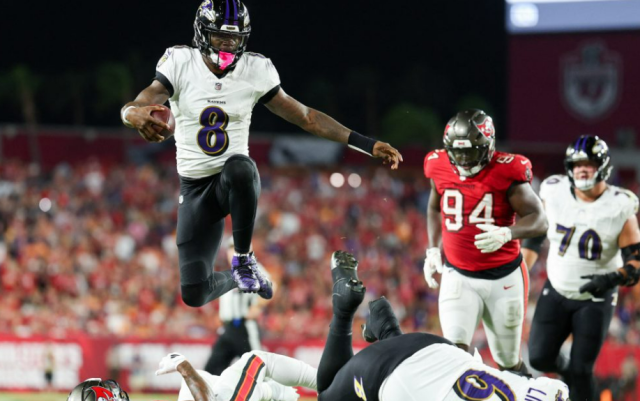 Lamar Jackson lanzó 5 pases de anotación para guiar el triunfo de los Baltimore Ravens 41-31 sobre los Tampa Bay Buccaneers, marcador engañoso para el aplastante dominio de los visitantes, logrando los Ravens su quinto triunfo en fila en la doble jornada del Monday Night Football que cerró la Semana 7 de la NFL.